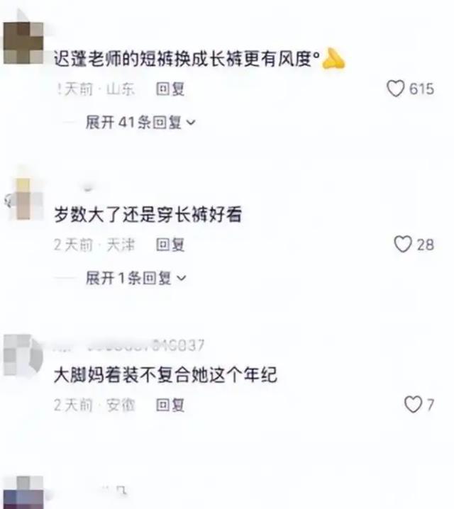 网友有人说她的穿着不得体,而且还说她岁数大了还是穿长裤比较合适,咱就是说,这种事毕竟是人家的事,咱要管也管不着。