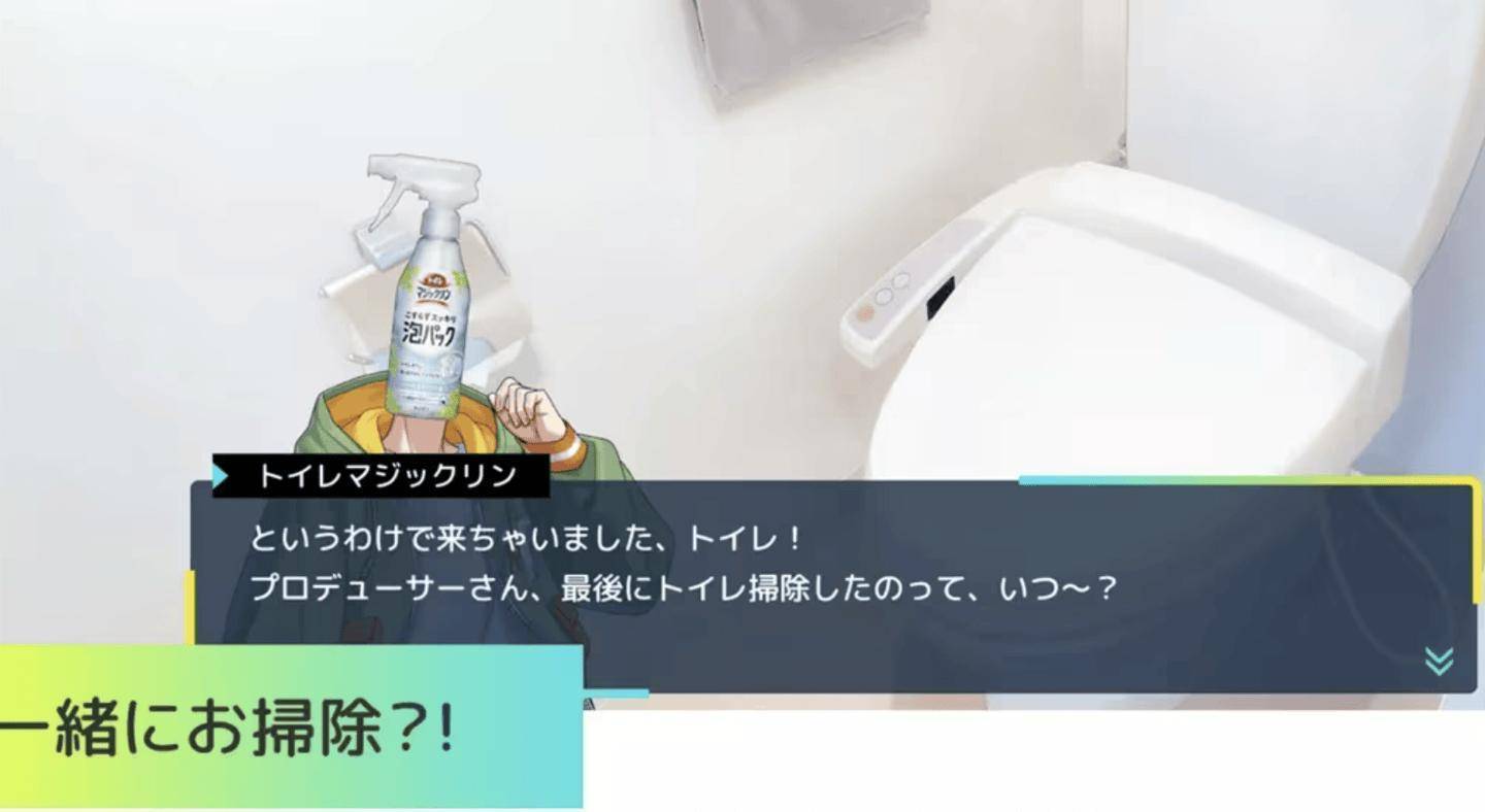 游戏里的四位“清洁偶像”可都是有原型的!比如顶着一头清爽蓝发的“珂珂透”,原型是花王超浓缩洗洁精,技能是“泡沫分身术”——对应现实中一泵就能产生大量泡沫的特性;而戴着浴帽的“魔术灵”则化身浴室清洁专家,必杀技“除霉光线”完美还原了产品除霉去水垢的实力。开发团队透露,每个角色的性格设计都和产品功能深度绑定,比如马桶清洁剂化身毒舌傲娇系男神,台词里全是“你这家伙又把马桶弄脏了啊”这种既毒舌又实用的清洁提示。